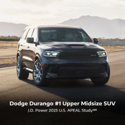 In 2022, the Dodge brand ranked No. 1 in the J.D. Power APEAL Study (mass market), making it the only domestic brand ever to do so three years in a row. In 2020, Dodge was named the “#1 Brand in Initial Quality,” making it the first domestic brand ever to rank No. 1 in the J.D. Power Initial Quality Study (IQS).