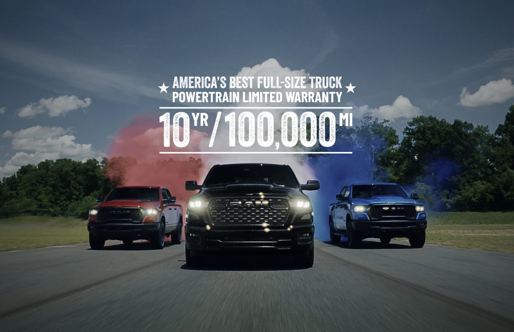 June 18, 2025 , Auburn Hills, Mich. – Ram brand now offers America’s best full-size truck limited powertrain warranty, covering 2026 model-year Ram trucks and vans (excluding full battery-electric vehicles) sold in the United States. The new 10-year/100,000-mile limited powertrain warranty reflects Ram’s commitment to long-term vehicle quality as more buyers opt for extended loan terms.